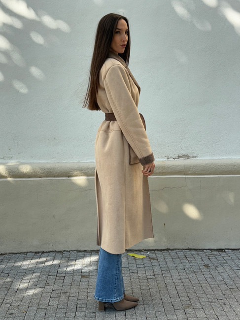 Jeho kombinácia béžovej a hnedej ma v sekunde zaujala, musela som ho dokonca vyskúšať priamo na dielni, pár dní po ušití prvého vzorkového kusu. Už vtedy ma naozaj očaril a už som sa videla, ako ho kombinujem s riflovinou a čižmičkami v rovnakej farbe.